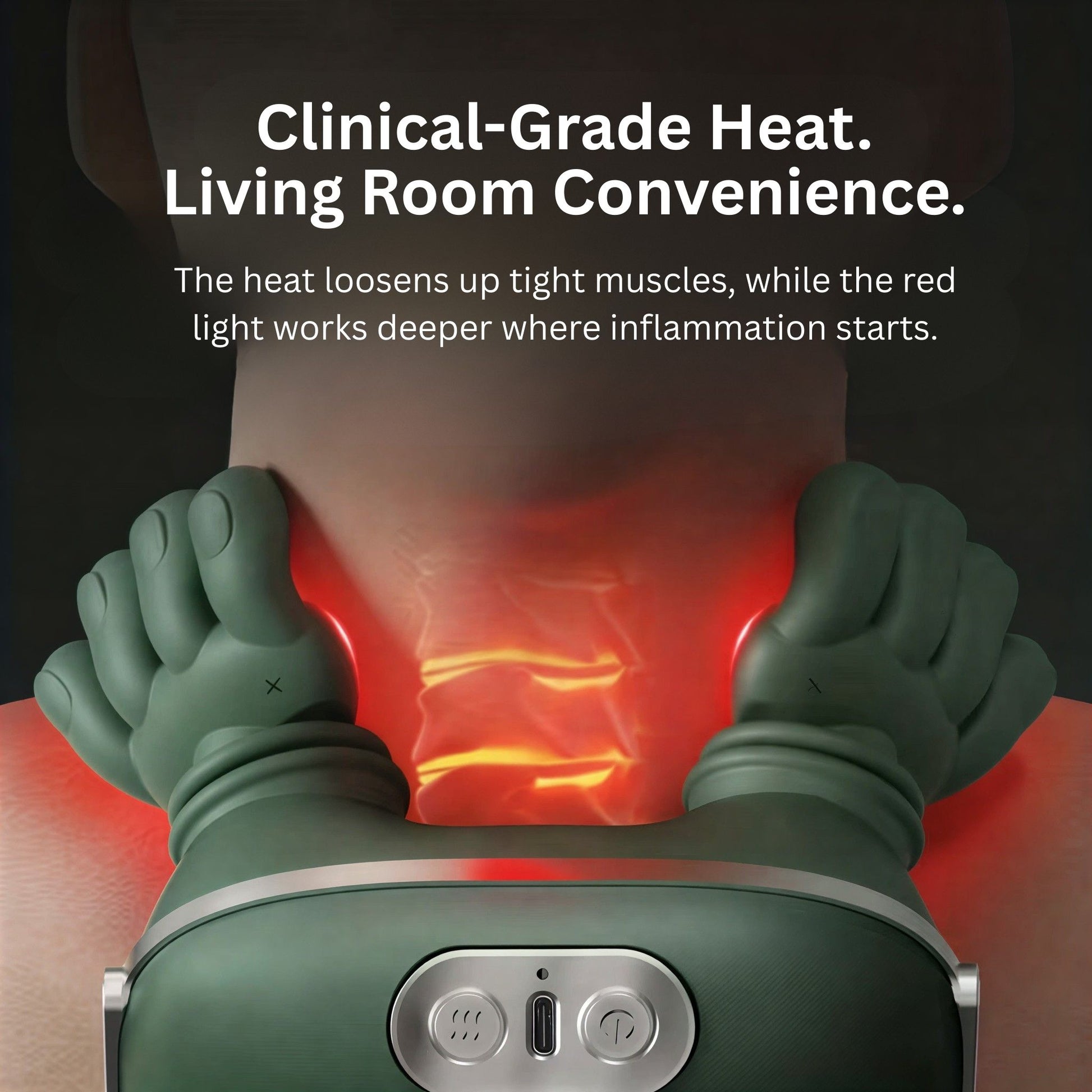 As the soft silicone “fingers” work around your neck, you can choose between two warmth levels to create a comforting heat that loosens built-up tension. Paired with the red-light setting, the experience feels noticeably soothing and promotes a sense of lightness in areas that normally feel tight.